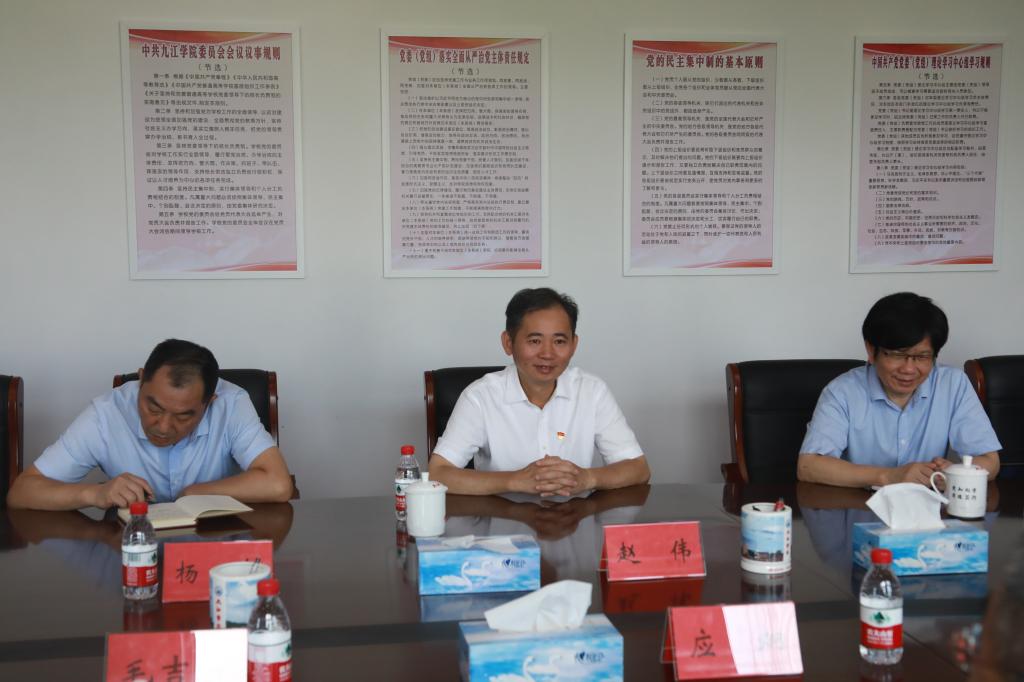为进一步加强校地合作,探讨建立校地合作的有效模式和长效机制,推动九江市与beat365官方网站优势互补、共同发展,8月4日上午,九江市委常委、常务副市长应炯就人才智库建设等工作来beat365进行调研。校党委书记赵伟热情接待应炯一行,并主持召开调研座谈会。