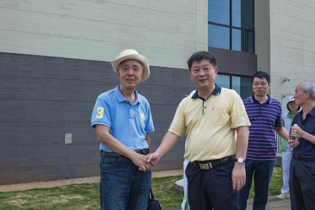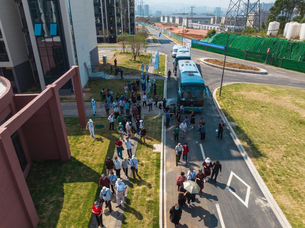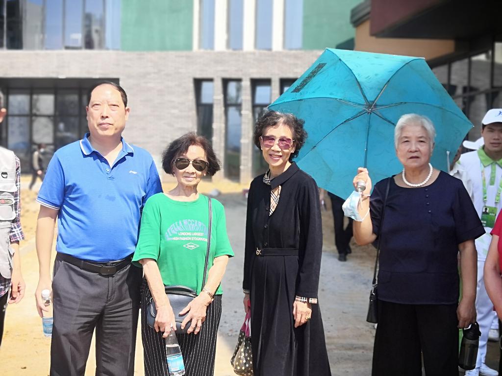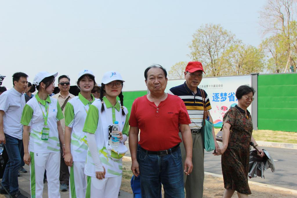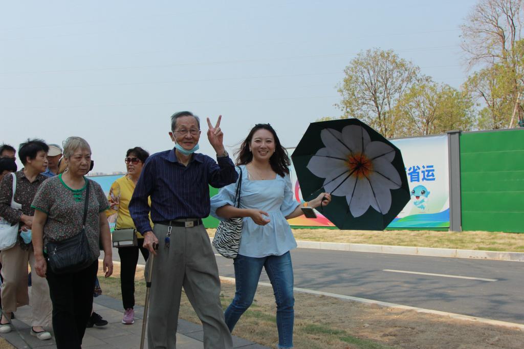 两名(右二、右一)90余岁的老同志参观省运会运动员村
