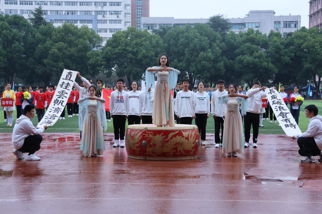 紧接着,鲜花队、彩旗队、裁判员方队和来自各个学院和学校教职工的22个运动员方阵也踏着矫健的步伐依次入场。击鼓表演、汉服舞蹈、纸牌拼字……运动会方阵入场精彩纷呈,各二级学院纷纷结合各自的学院和专业特色,用别出心栽的表演向党的二十大献礼。时尚新潮的音乐、青春曼妙的舞姿、铿锵响亮的口号,让人感受到了青春的活力、创造的激情;昂扬饱满的状态、勃发的英姿和别出心裁的方阵秀让现场的气氛瞬间热烈起来,掌声、欢呼声响彻云霄。