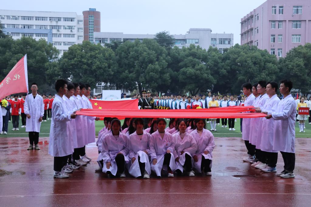 入场仪式结束后,国旗班的同学们迈着矫健整齐的步伐走向升旗台。庄严的国歌声响起,在全体师生的注目礼下,五星红旗冉冉升起,飘扬在学校的上空。