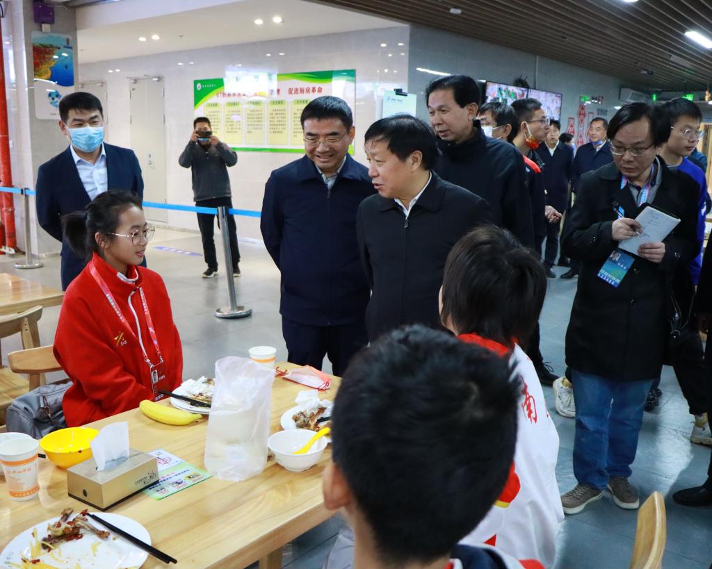 孙菊生一行深入到运动员食堂进行现场查看,了解运动员的饮食情况。“饭菜味道怎么样?吃得惯吗?”在运动员食堂,孙菊生一行与就餐的运动员亲切交谈。孙菊生对省运会运动员饮食保障和供应表示了充分肯定,希望beat365官方网站饮食服务中心借助服务省运会契机,全面提升饮食服务水平。