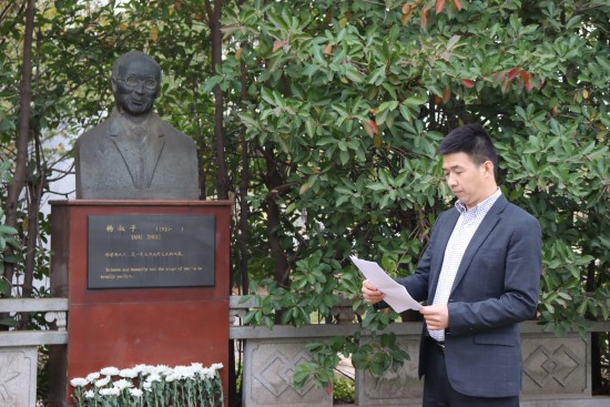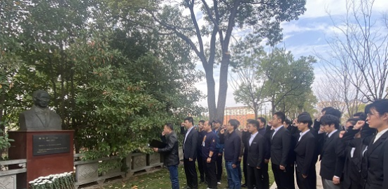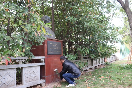 11月5日下午,师生代表来到校园内叔子先生雕像前表达哀思,深切缅怀杨叔子院士。