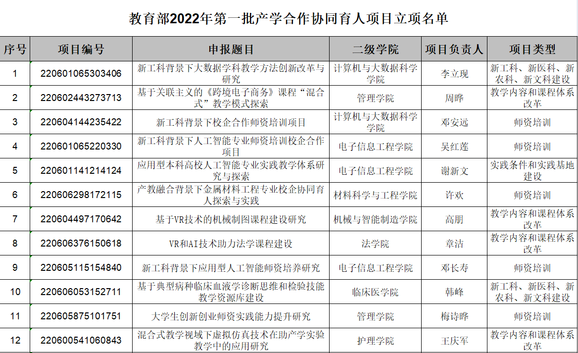教育部产学合作协同育人项目旨在贯彻落实《国务院办公厅关于深化产教融合的若干意见》精神,落实《教育部工业和信息化部中国工程院关于加快建设发展新工科实施卓越工程师教育培养计划2.0的意见》和《教育部产学合作协同育人项目管理办法》要求,通过政府搭台、企业支持、高校对接、共建共享,深化产教融合,促进教育链、人才链与产业链、创新链有机衔接,以产业和技术发展的最新需求来推动高校人才培养改革。今年,教育部产学合作协同育人项目被列入2022年度江西省属高校综合考核的重要考核指标之一。