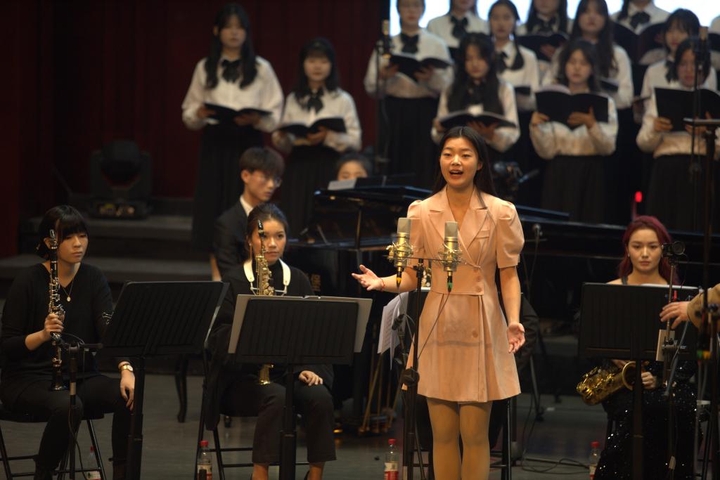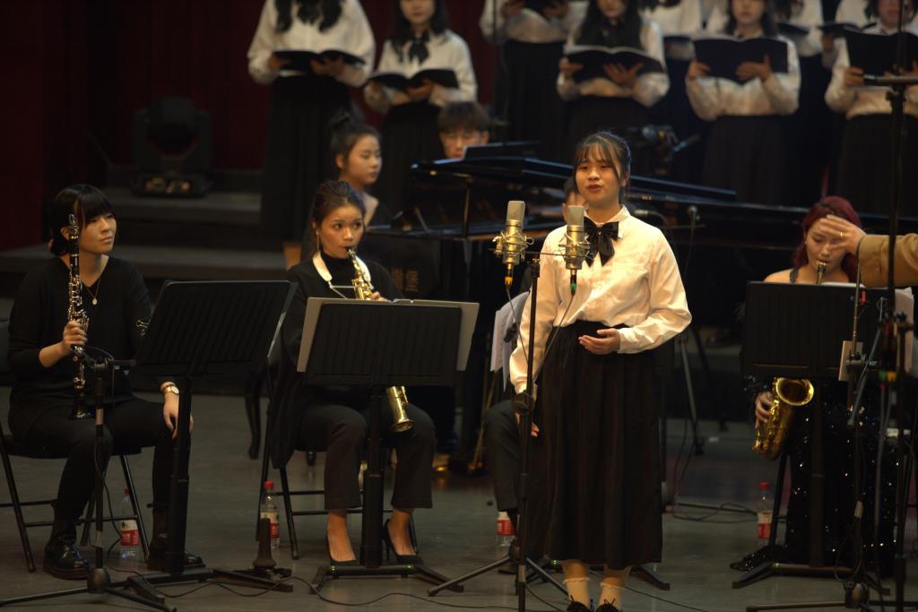 音乐会在壮美悠扬的《beat365官方网站校歌》中拉开帷幕,唱响了九院莘莘学子共创美好校园的信心与决心。作品《欢庆舞曲》《瑶族舞曲》《青年圆舞曲》,既是向党的二十大的献礼,也表达了辞旧迎新之际的美好祝福。《新的天地》《送你一把泥土》传递出浓烈的爱国情怀。室内乐合唱、独唱、朗诵组曲《浔城谷雨诗钞》分为《五言律诗·九江》《漫步浔城》《初春》《走》《甘棠遗梦》等九个段落,音乐风格抒情婉转、舒适动听,将原诗作的文学意境升华至新的境界。