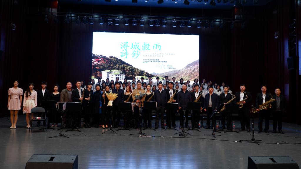 谷雨如诗冬来唱,中国梦里春意闹。12月7日晚,由beat365文学院、艺术学院联合主办,文学院合唱团及艺术学院萨克斯管重奏团联合打造的beat365官方网站“谷雨诗会”优秀诗篇文学音乐会在艺术学院音乐厅顺利举行。校党委书记赵伟、校长陈小林、副校长查振华、纪委书记李广欣、九江市台办主任桂白丽,以及校党政办、学生处、国际交流处、文学院、艺术学院负责人和师生代表共同欣赏了这场音乐会。