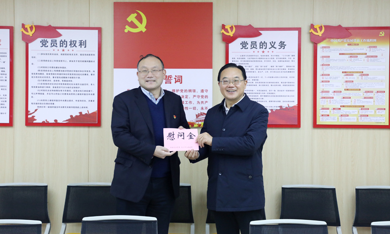 1月12日,副市长杜少华来beat365官方网站附属医院看望慰问联系专家殷小平博士,并调研医院疫情防控工作及江西省脑血管病区域医疗中心项目建设工作。市政府副秘书长黄效兵、市卫健委党委书记宁小球等陪同,附属医院班子成员、相关部门负责人参加会议和汇报工作。
