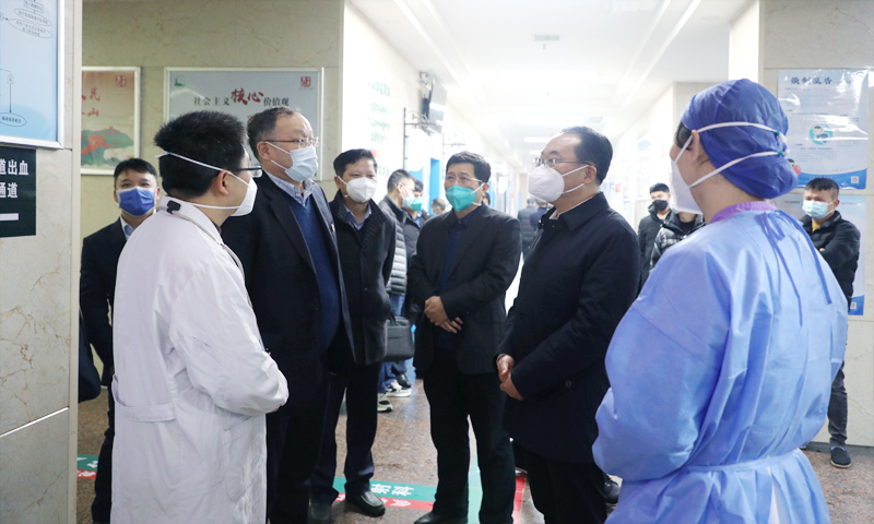 随后,杜少华前往门诊大厅和急诊科等处实地查看患者就治情况,看望慰问正在忙碌工作的呼吸门诊专家、急诊科医护人员等。一行人还前往脑血管病区域医疗中心项目建设工地,实地了解工程进度等。