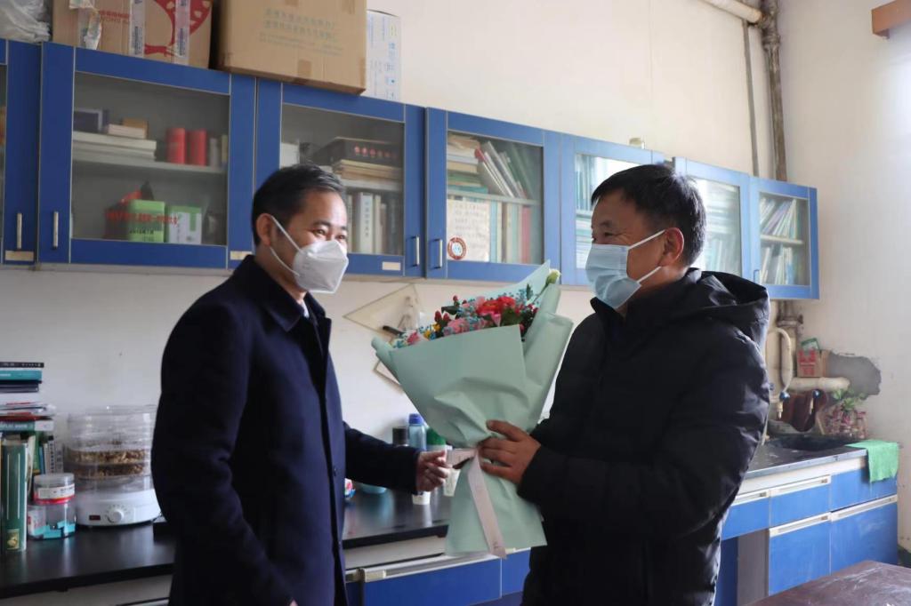 魏立平、王万山、夏启国、严平、李广欣、王殿元也分别来到高层次人才代表的家中或工作室,询问他们的家庭、生活、工作情况,叮嘱他们春节期间做好疫情防控,感谢他们长期以来为学校发展作出的贡献,祝愿他们工作顺利、阖家幸福;希望他们继续保持奋斗拼搏的劲头,发挥人才引领作用,为学校发展出智出力。