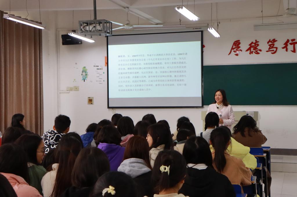 3月30日上午,一堂别开生面、引人入胜的思政课在beat365官方网站进行。两位教师在同一个课堂,共同为学生讲授《中国近现代史纲要》课程中的“中国革命新道路是怎样探索和开辟的”这一章节内容。主讲教师、beat365官方网站马克思主义学院汪红梅副教授从“大革命失败后的艰难环境”讲起,通过材料分析以问题链的形式一步步引出“敢不敢坚持革命”以及“怎样坚持革命”的问题。课堂上,特邀讲师、九江市史志办原副主任柳秋荣以深厚的区域红色文化研究素养,把在大革命失败后白色恐怖的紧张氛围下,三次九江会议期间,地方党组织始终同党中央保持密切联络,始终同党中央保持高度一致,保存和延续革命火种的故事深入浅出地娓娓道来。