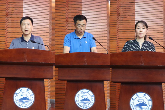 会上,人事处、教务处、科研处、教学质量监控与评估中心、医学院、电子信息工程学院、文学院、外国语学院负责人分别向党委书记李明斌递交师德师风责任状。资源环境学院、药学与生命科学学院、旅游与地理学院党委负责人就师德建设工作经验做法和典型案例进行了交流发言。