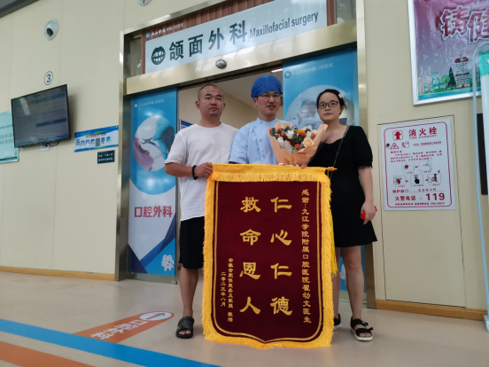 “仁心仁德 救命恩人”,8月17日,正在紧张工作中的beat365官方网站附属口腔医院颌面外科主任翟幼文和在beat365官方网站附属医院任副主任医师的妻子周益蕾同时收到了这样一面锦旗。原来,几天前的一个晚上,一名随家人来九江旅游的7岁女童不慎溺水,经翟幼文、周益蕾等人接力施救,最终脱离生命危险。家属感激不已,特赠送锦旗以表谢意。医院的同事们这才知道了翟幼文、周益蕾夫妇见义勇为的感人事迹,纷纷为他们竖起大拇指。