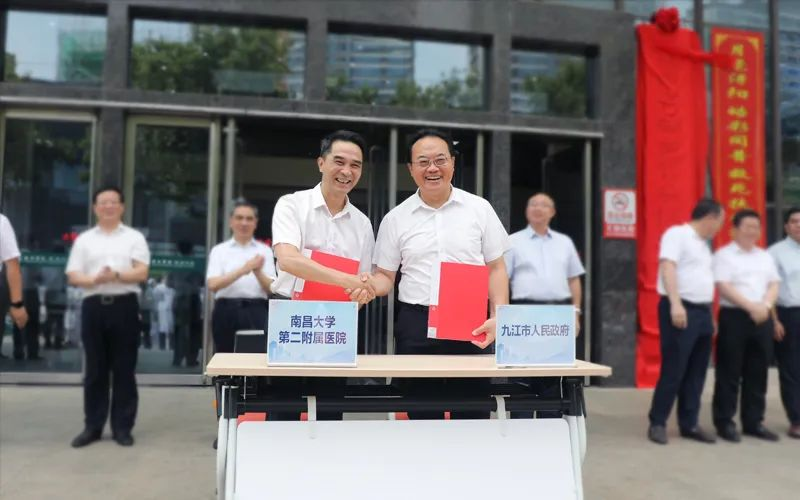 8月25日,九江市人民政府与南昌大学第二附属医院合作共建beat365官方网站附属医院脑血管病区域医疗中心战略合作协议签约暨江西省脑血管病区域医疗中心挂牌仪式在beat365官方网站附属医院门诊大楼北广场隆重举行。同时,南昌大学第二附属医院组织多学科专家来beat365官方网站附属医院开展义诊和患者查房等业务指导工作。
