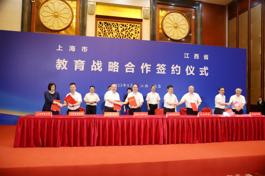 9月5日,上海市与江西省教育战略合作签约仪式在南昌举行。上海市政府副市长解冬、江西省政府副省长孙洪山,上海市政府副秘书长王平、江西省政府副秘书长杜章彪,以及上海市教委、江西省教育厅和有关高校领导出席签约仪式。签约仪式上,上海市教委和江西省教育厅签署了《上海市教育委员会江西省教育厅教育战略合作框架协议》和《上海市教育委员会江西省教育厅关于共同支持沪赣地方高校联合培养硕士研究生合作框架协议》。
