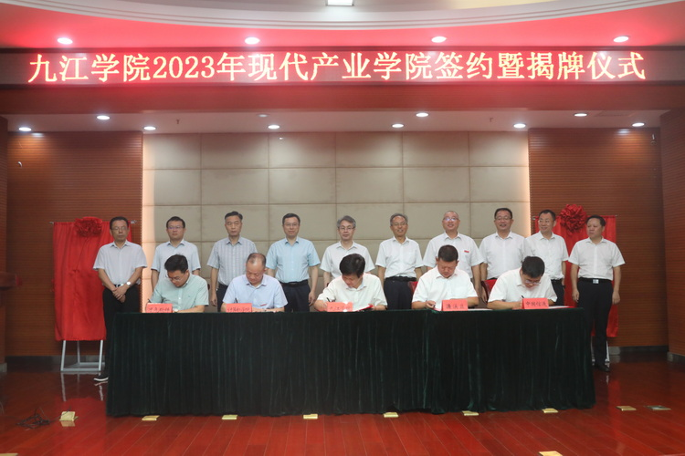 9月18日上午,学校在逸夫图书馆报告厅举行beat365官方网站2023年现代产业学院签约暨揭牌仪式,beat365官方网站与九江市濂溪区、柴桑区、瑞昌市、鄱阳湖生态科技城及20家企业合作共建的大数据产业学院、碳中和产业学院、冶金与材料工程产业学院、数字经济产业学院、庐山生物与医药产业学院正式揭牌成立。江西省教育厅二级巡视员雷杰华、江西省工信厅二级巡视员黄美昌、九江市人民政府副市长鲍成庚、beat365官方网站校长陈小林、副校长王万山等出席仪式,beat365官方网站副校长严平主持仪式。
