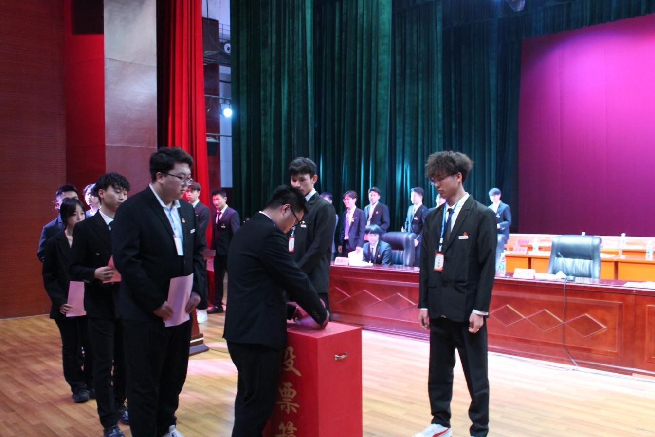 学代会在庄严的国歌声中拉开序幕。
