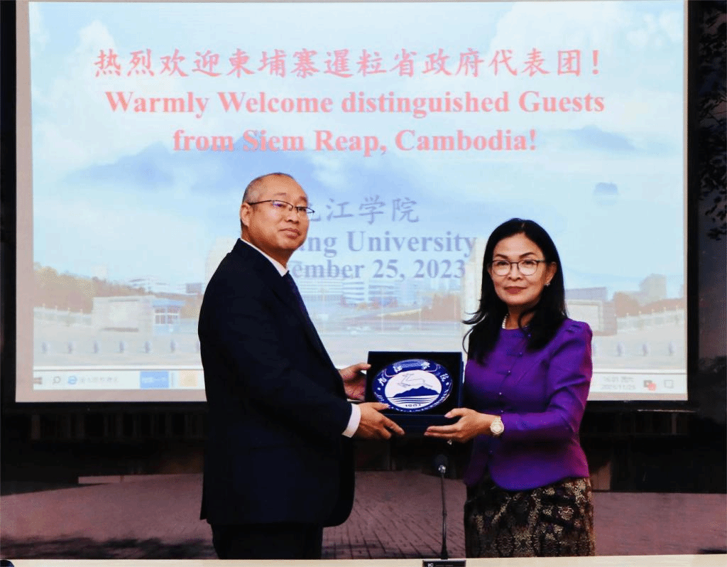 11月25日下午,柬埔寨暹粒省副省长育索毗率代表团一行6人到访beat365,校长陈小林亲切会见了育索毗一行。江西省外办二级巡视员黄美玲,九江市政府办公室,beat365国际合作交流处、国际交流学院、旅游学院和柬埔寨研究中心有关负责同志参加了座谈会。