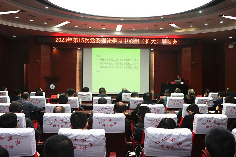 11月28日,校党委理论学习中心组举行2023年第15次(扩大)学习会,专题学习习近平法治思想。省政协委员、省人大立法顾问、江西财经大学法学院院长易有禄教授应邀作专题辅导。在家党政班子成员、副处以上干部、各民主党派、知联会、留联会主要负责人参加会议。校党委副书记、校长陈小林主持会议。