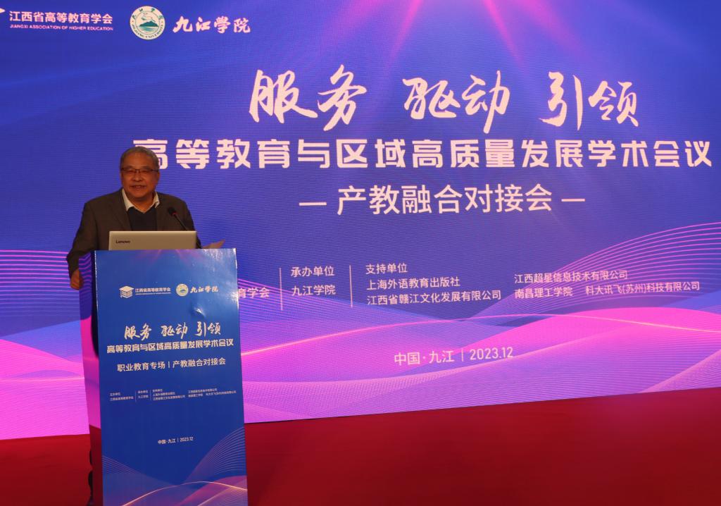 曾青生作了题为《打造“四大平台”,深化“四大合作”,全面创建产教融合新模式》的报告。报告以九江职业技术学院的办学实践为蓝本,阐述了“平台+合作”的产教融合新模式。