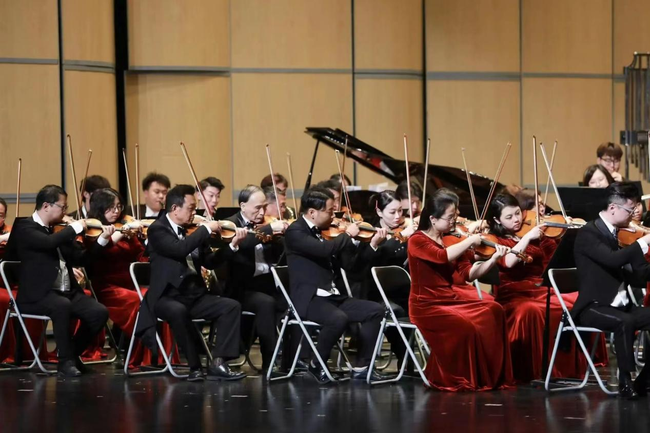 市文化艺术中心大剧院灯光璀璨,洋溢着节日的喜庆气氛。19时35分,音乐会以一曲热情洋溢的《春节序曲》作为开场,明快的节奏、欢腾喜庆的旋律瞬间将观众带入新年的热闹场面中。