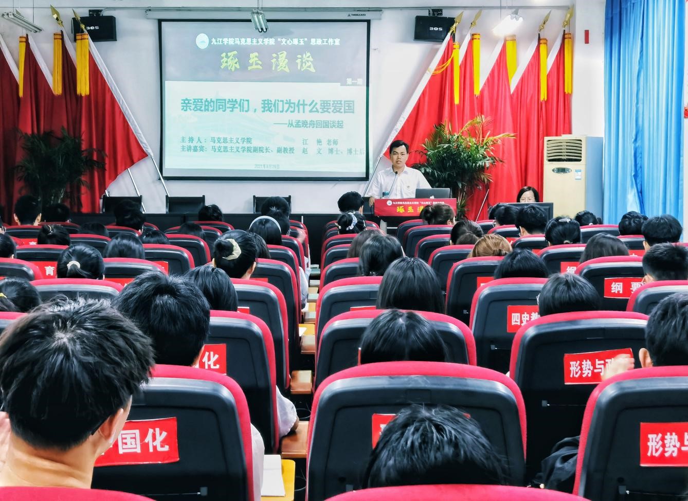 听·“琢玉漫谈”。“琢玉漫谈”是“文心琢玉”思政工作室的一项主要活动品牌,定期邀请校内外专家结合社会舆论热点、群众关注焦点、学生思想堵点等问题开展讲座交流。两年来,先后开展了“为什么要爱国”“怎样成为一名幸福的时代青年”“马克思主义为什么行”“归国博士谈海外留学生活”“大学生沟通与礼仪”“大学生恋爱心理导学”等9期漫谈,线上线下覆盖学生3000余人次,深入系统地解答大学生在思想成长中出现的思想困惑,助推大学生思想成长。