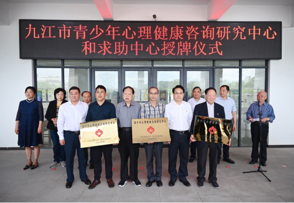 5月10日上午,九江市关工委在beat365举行青少年心理健康咨询研究中心和求助中心授牌仪式。beat365官方网站党委书记李明斌、九江市关工委主任史之汉等出席授牌仪式。