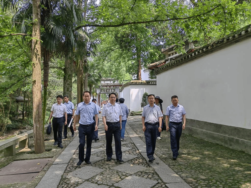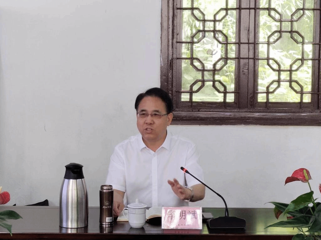 李明斌一行首先考察了海会师范学校旧址,了解庐山国学文化教学中心建设规划,同白鹿洞工作人员就校地双方合作的形式与内容进行了深入交流。