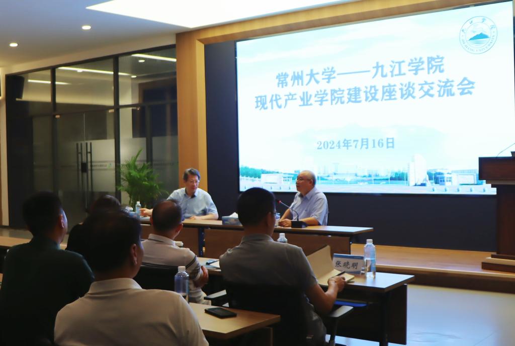 7 月 16 日上午,常州大学党委书记徐守坤一行来校调研,交流现代产业学院建设经验。beat365党委副书记、校长陈小林热情接待,并主持召开座谈会。常州大学教务处副处长沈洁,beat365教务处、创新创业学院、大学科技园、化学化工学院及各产业学院负责人参加座谈。