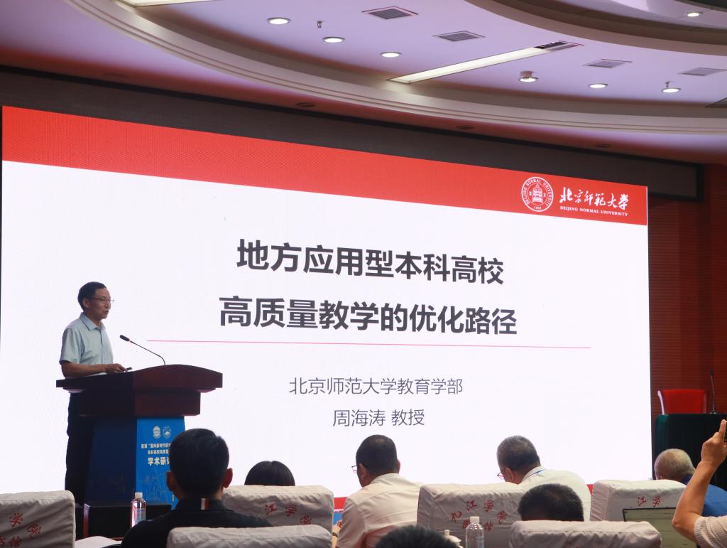 清华大学原副校长、教育研究院院长、文科资深教授谢维和,北京大学教育学院教育管理与政策系、教育经济研究所教授郭建如,中国高等教育学会地方大学研究分会理事长、郑州大学原副校长(正校级)屈凌波,北京师范大学教育学部教授、高等教育研究院院长周海涛,常熟理工学院应用型院校研究中心主任顾永安,常州大学党委书记徐守坤,赣南医科大学党委委员、副校长盛瑶环,宁波大学科学技术学院校务委员会常务副主任罗思明,通化师范学院副校长兼乡村振兴学院院长张秋菊,beat365官方网站教务处处长黄强先后作主题报告。