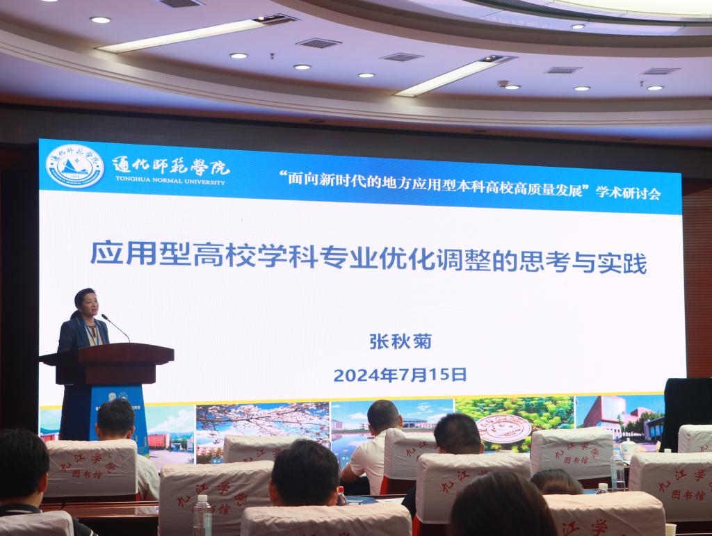 张秋菊作了题为《应用型高校学科专业优化调整的思考与实践》的报告。报告以应用型高校学科专业调整的背景使命为基点,指向对应用型高校学科专业时代性、地方性、应用型、一体化发展定位的思考。同时,以通化师范学院的实践之路,彰显应用型高校发展过程中的地域特色与专业建设特色。
