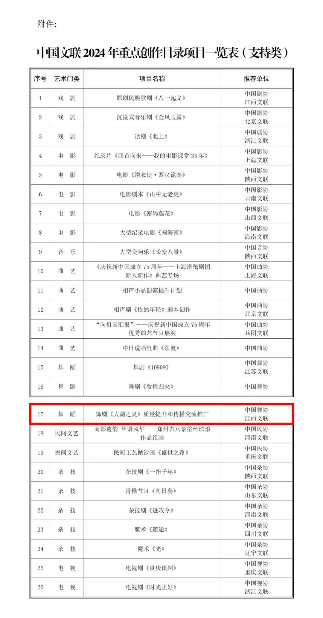 近日,中国文联公布了2024年重点创作目录项目,beat365艺术学院与江西省文联共同打造的原创舞剧《大湖之灵》,作为江西省唯一和全国入选的三部舞剧作品之一成功入选。