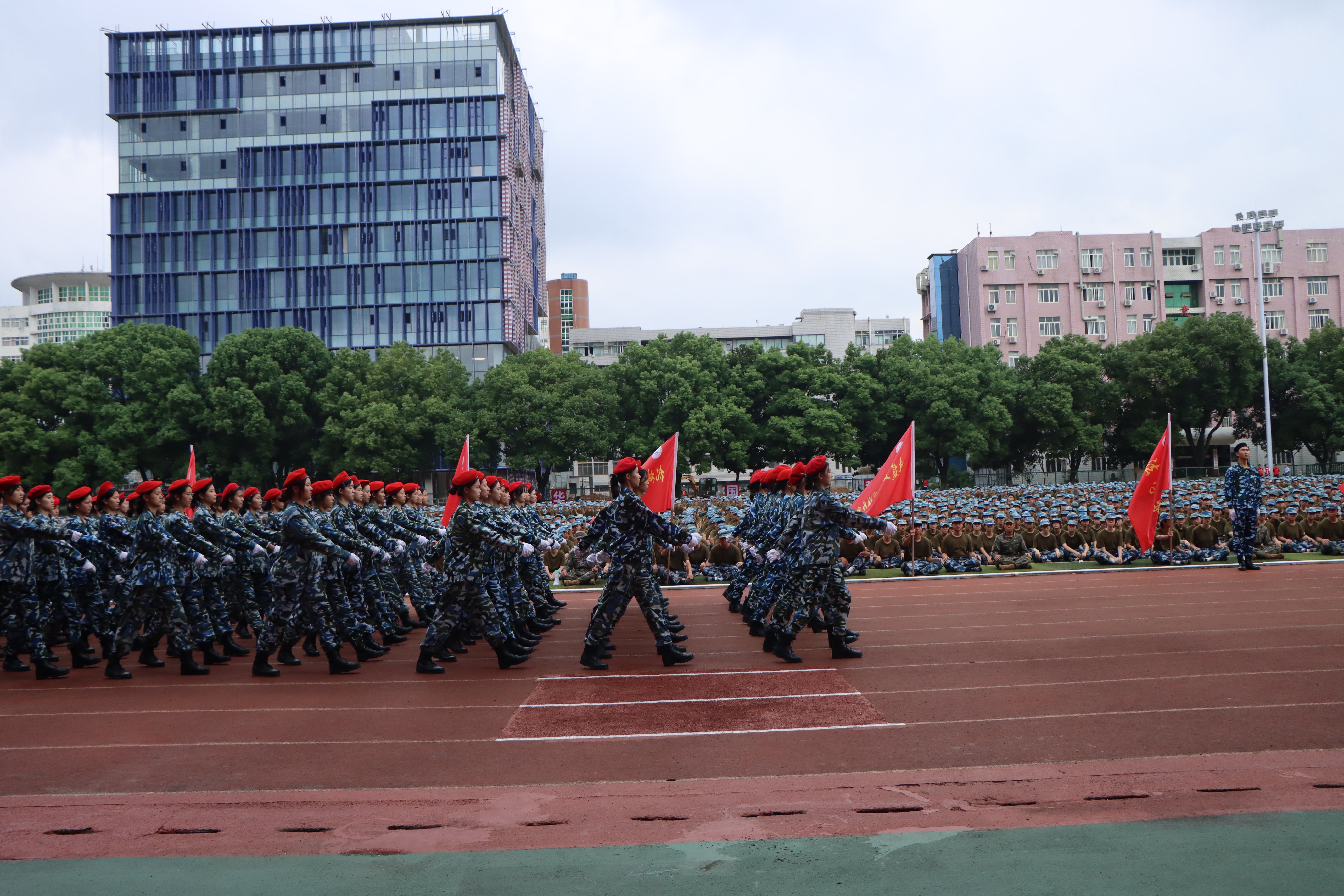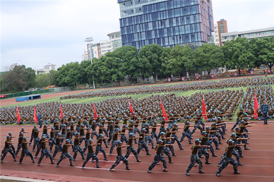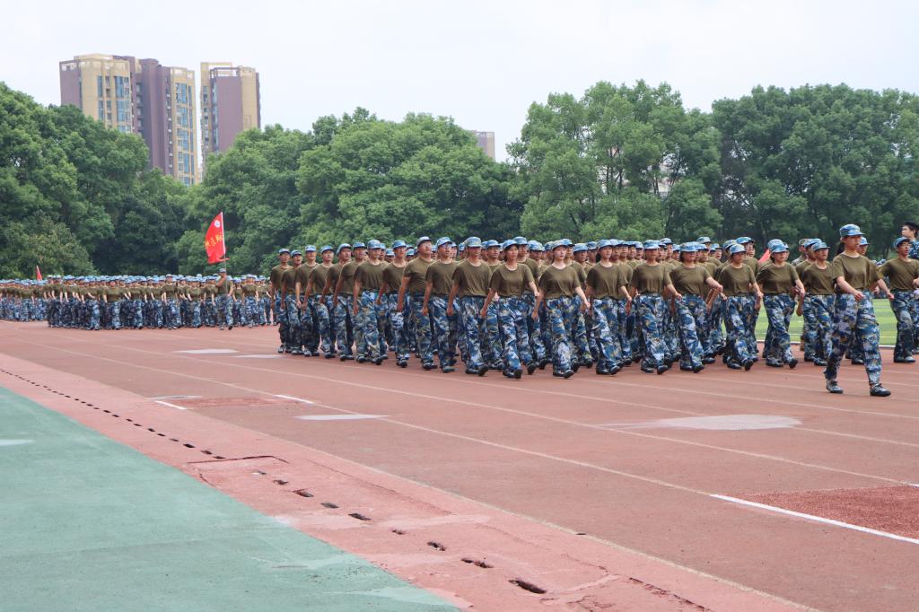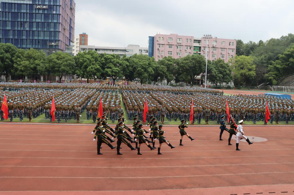 在高亢的口号声中,各军训方阵迈着整齐的步伐,斗志昂扬地通过主席台,接受庄严检阅。军训成果展示环节,标兵连队列、军旅拳、匕首操等汇报表演赢得了在场领导和观众的阵阵掌声。新生们训练有素,勇敢坚毅,全面展示了九院学子蓬勃向上的青春风采。