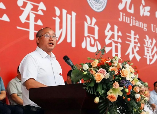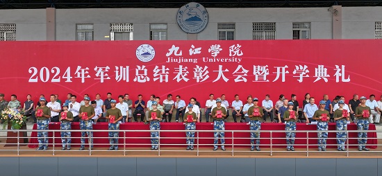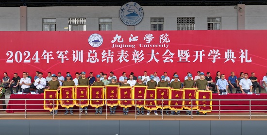 武警九江支队预提指挥警士集训队队长袁宋宣布军训会操、内务评比表彰决定,学生工作处处长、军训旅政委吴铃宣布军训优秀学员表彰决定。主席台领导为获得表彰的先进集体、优秀学员颁发锦旗和荣誉证书。