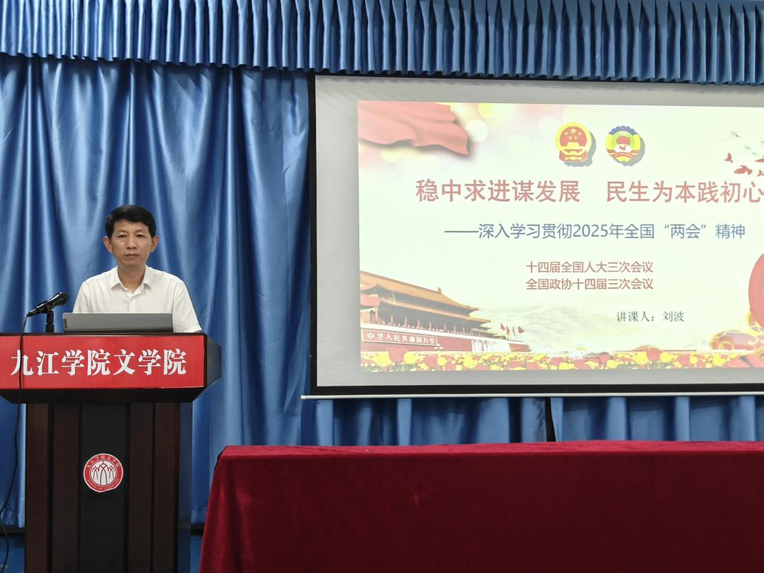 4月21日,党委委员、纪委书记刘波为文学院A2451班学生上思政课。