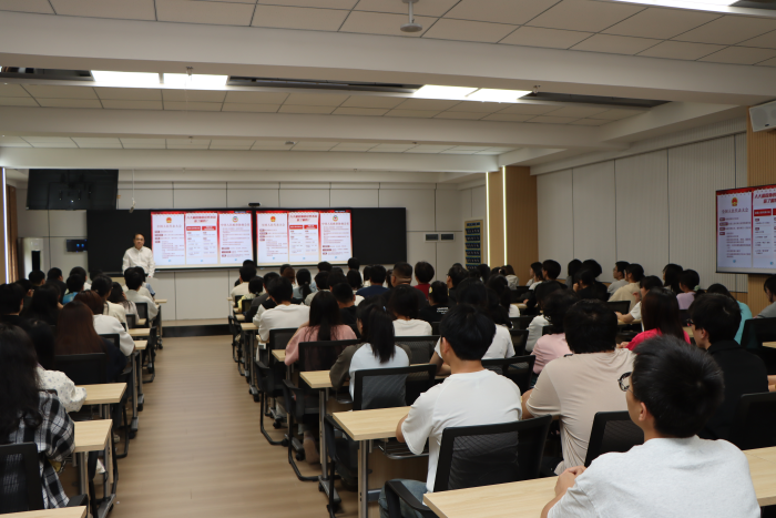 校领导们旁征博引,通过生动的案例和数据图表,让枯燥的政策解读变得通俗易懂;同学们则认真记录、积极提问,多次与校领导就就业形势、课程改革和创新创业等话题展开交流。