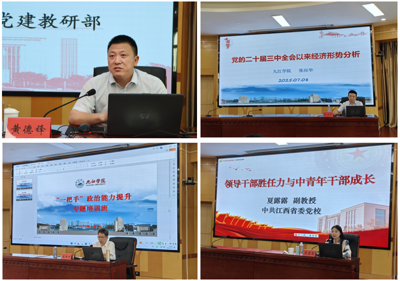 培训班课程紧扣深入贯彻中央八项规定精神学习教育和干部能力提升,既有理论学习,又有形势分析,既注重方法讲授,又注重研讨交流,做到了理论与实践相结合、务虚与务实相统一。培训班开展了4场专题辅导,邀请了省委党校党史党建教研部主任黄德锋教授作《习近平总书记关于树牢正确权力观、政绩观、事业观论述》辅导报告,省委党校国家治理教研部夏露露副教授作《领导干部胜任力与中青年干部成长》辅导报告,beat365官方网站马克思主义学院院长陈胜才教授作《持续擦亮新时代党的建设“金色名片”》辅导报告,beat365官方网站经济学院张应华副教授作《党的二十届三中全会以来全国经济形势分析》辅导报告。组织学员观看了警示教育片《镜鉴家风》,并以“结合工作实际谈如何贯彻中央八项规定精神,推进作风建设常态化、长效化”为主题,开展了1次分组交流研讨。