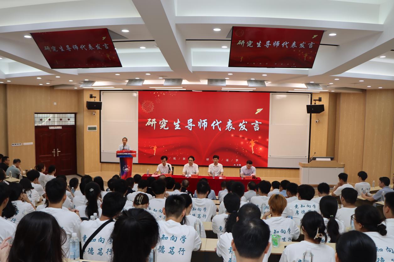 发展规划与研究生处负责人在典礼上详细介绍了学校构建的“产业学院+学术平台”双轨培养体系,全面展示学校在资源支持、学术规范与成长路径等方面的优势。