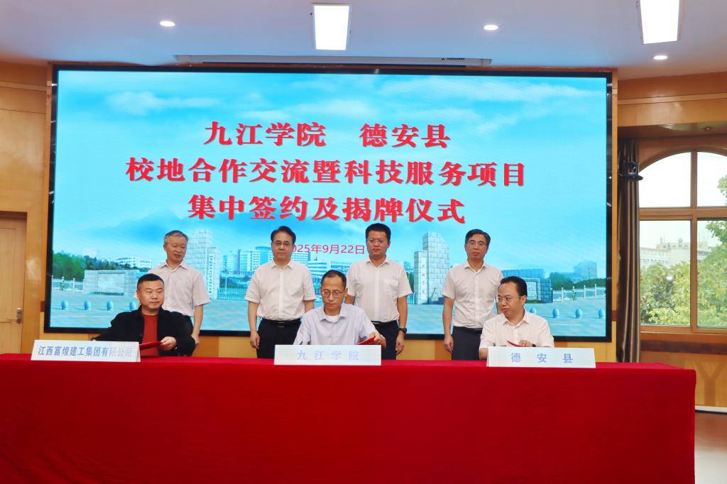 李明斌在致辞时首先感谢德安县长期以来给予学校建设发展的鼎力支持,并简要介绍了学校基本情况和服务地方经济社会高质量发展的举措。他表示,作为赣北地区唯一一所硕士学位授予单位高校,beat365官方网站充分发挥人才和智力优势,主动融入地方经济社会发展,制定实施“服务九江经济社会发展20条”,大力推进“十百千”社会服务体系建设,组建科技服务领军团、高层次人才服务队、高质量发展教师服务队,打造地方高校科技赋能地方高质量发展新模式。7月份双方签署战略合作协议,开启了校地深化合作、共谋发展的新征程,这次集中签订科技服务项目,有利于进一步推动战略合作协议落到实处,是双方深入贯彻落实习近平总书记考察江西重要讲话精神的生动实践,也是校地融合发展的有益探索。