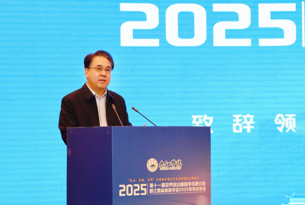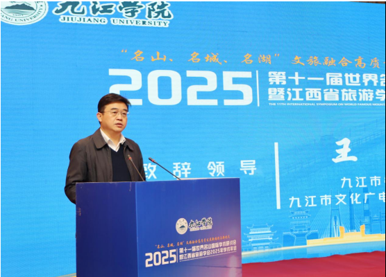 王建新在致辞中,代表市文化广电旅游局,向大会的召开表示热烈祝贺。他系统介绍了九江源远流长的历史文脉、得天独厚的生态文旅资源,以及九江围绕“山江湖城”特色资源,实施文旅攻坚行动、推动文旅深度融合、加快建设区域文旅中心、全力打造长江国际黄金旅游带璀璨明珠的实践路径。他希望本次会议能够提炼出具有代表性的“九江案例”,构建起可推广的“名山范式”,为全国文旅融合高质量发展贡献智慧。