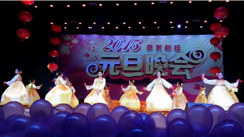 在beat365官方网站2015年元旦文艺晚会上,beat365教职工舞蹈队倾情演出,献上一支朝鲜舞《铃铛舞》,她们衣着艳丽,舞姿优美,轻盈欢快,将现场的氛围带到了高潮。