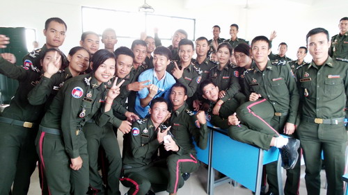 现场气氛热烈,场面火爆,同学们纷纷展示了平日里学习过的中文歌曲,其中惊喜连连,掌声此起彼伏。在一场又一场的拼杀中,最终第五营汉语学员彭索容,第六营汉语学员吴利兴两位同学胜出,将代表陆军学院汉语中心赴金边参加下一阶段的比赛。