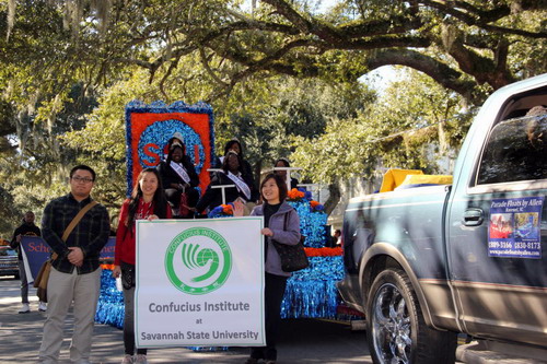 1月19日,萨凡纳州立大学孔子学院的老师和萨凡纳州立大学的师生代表队一起,和当地民众相聚在萨凡纳市中心参加马丁路德金日庆祝活动,共同纪念这位伟人。这是萨凡纳州立大学孔子学院第一次利用法定纪念日向萨凡纳市民推广和介绍孔子学院。