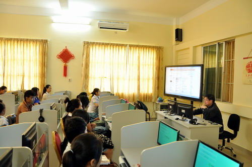 参加完第9届全球孔子学院大会回来后,谢莫尼勒院长积极推进柬埔寨王家研究院孔子学院利用电子图书资源的工作,在孔子学院铺设新的网线,印制张贴孔子学院数字图书馆、beat365官方网站电子图书馆使用方法,并将和东南亚电信(柬埔寨)有限公司共建柬埔寨网络孔子课堂, 为柬埔寨偏远地区学生开设网络汉语课程。