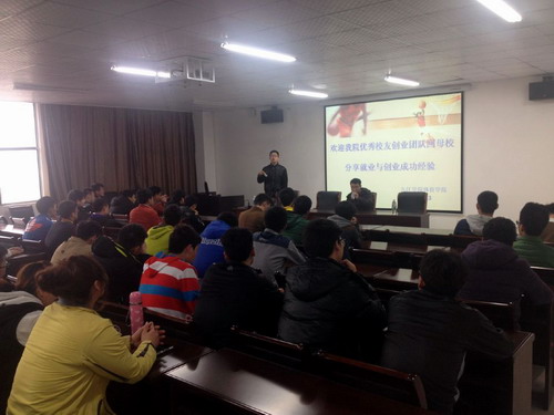 在交流现场,郭峰和曹杨斌分别向在座的领导、老师、师弟师妹分享了自己的创业经历,创业的艰辛与快乐,并鼓励师弟师妹们要扎实地打好专业理论与技能的基础,不断丰富知识层面,积累社会实践经验。两位校友坦言,只要不怕苦、不怕累,坚持不懈的朝着自己的人生理想目标努力奋斗,成功就一定在眼前。
