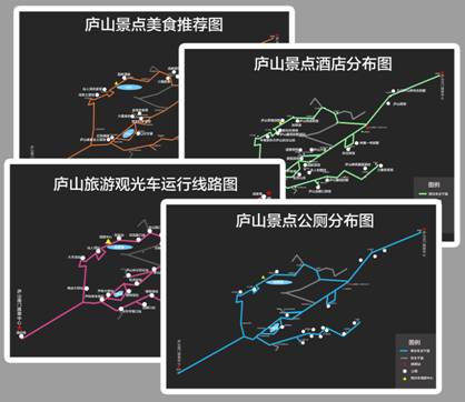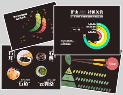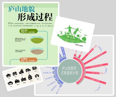 活动期间,两校学生共同组成了9个设计小组,每个小组在专业老师的指导下拟定各自设计主题与任务,如“庐山美食APP”、“庐山旅游路线设计与游客意愿对比”、“庐山旅游地图的分类设计”和“庐山的前世今生”等信息可视化设计;之后各团队通过调研、素材收集、方案讨论、草图绘制和界面设计等环节,将相应内容以视觉形式呈现出来并做最终汇报。