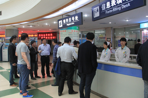 随后,在相关工作人员的带领下,张院长一行实践体验了南大一附院和南大二附院的微信预约挂号就诊服务流程,从细处、实处现场学习兄弟医院的“微服务”工作经验。