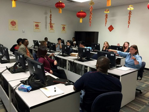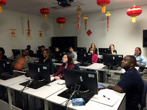 4月30日下午,美国萨凡纳州立大学孔子学院在学校图书馆二楼教室组织召开了beat365官方网站和萨凡纳州立大学两校交换生经验交流座谈会。参加交流会的有萨凡纳州立大学孔子学院中方院长罗其娟、外方院长Peggy Blood、国际交流中心主任Emmanuel Nanuzeyi、孔子学院教师、两校交换生代表以及计划今年参加交换项目的萨凡纳州立大学学生近20人。