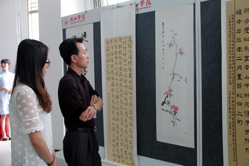 为了让江西各大高校大学生书法爱好者,能够有一个互相切磋交流的平台,让更多的人了解书画、摄影艺术。6月1日上午9:30,艺术学院星河联合会在beat365官方网站逸夫图书馆展厅举行了beat365官方网站首届江西高校书画摄影联展。艺术学院院长吴维勇、党委书记王春生、副院长虞斌以及龚晓天、余晓庭、吕卫寰等老师出席了此次开幕式。