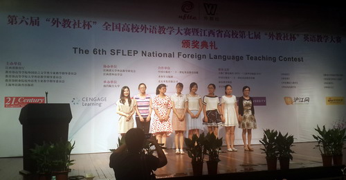第六届“外教社杯”全国高校外语教学大赛暨江西省高校第七届“外教社杯”英语教学大赛复赛、决赛于2015年6月26日至28日在南昌航空大学成功举办。本次比赛由江西省教育厅和上海外语教育出版社联合主办,共吸引来自全省41所本科院校的110名教师参加,规模创历史之最,高手云集。英语专业评委团由全国组委会特派评委冯庆华教授与来自全省各高校的30多名英语专家教授组成。