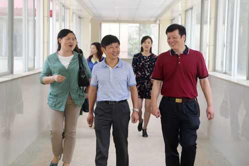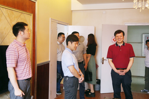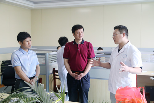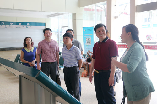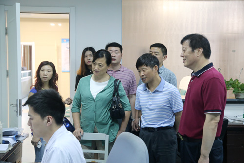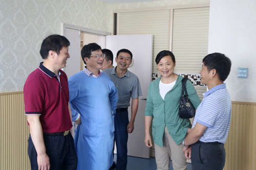 随后,庐山区人民医院胡小明院长一行在张院长、张书记的带领下,参观了临床医学院/附属医院心内科介入室、消化内镜中心、新门诊楼、磁共振室、休闲茶吧、营养食堂以及骨科、儿科、产科、神经内科病区和VIP病房等处。每到一处,一行人都仔细了解,纷纷感叹临床医学院/附属医院变化之大,设计规划之用心,表示对附属医院的发展劲头充满了信心,对两院合作共赢充满了期待。