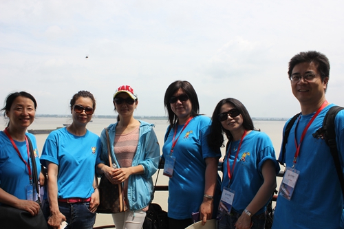 7月26日上午,营员们沿路往赣东北而去,来到位于江西九江湖口县鄱阳湖出口处的石钟山,此山不高,海拔只有61.8米,营员们带着愉快的心情向上爬着。听说此山因山石多隙,水石相搏,能击出如钟鸣之声,营员们便都来到大石面前,敲击着石头。鄱湖人余亚飞诗称:“鄱湖接近长江处,二水相交奇景生,澈夜浑流互排斥,浊清界限见分明”。随之大家坐上小艇看石钟山,感受风景雄奇秀丽,也亲眼所见水线分明,江水浑浊,湖水碧清的神奇。